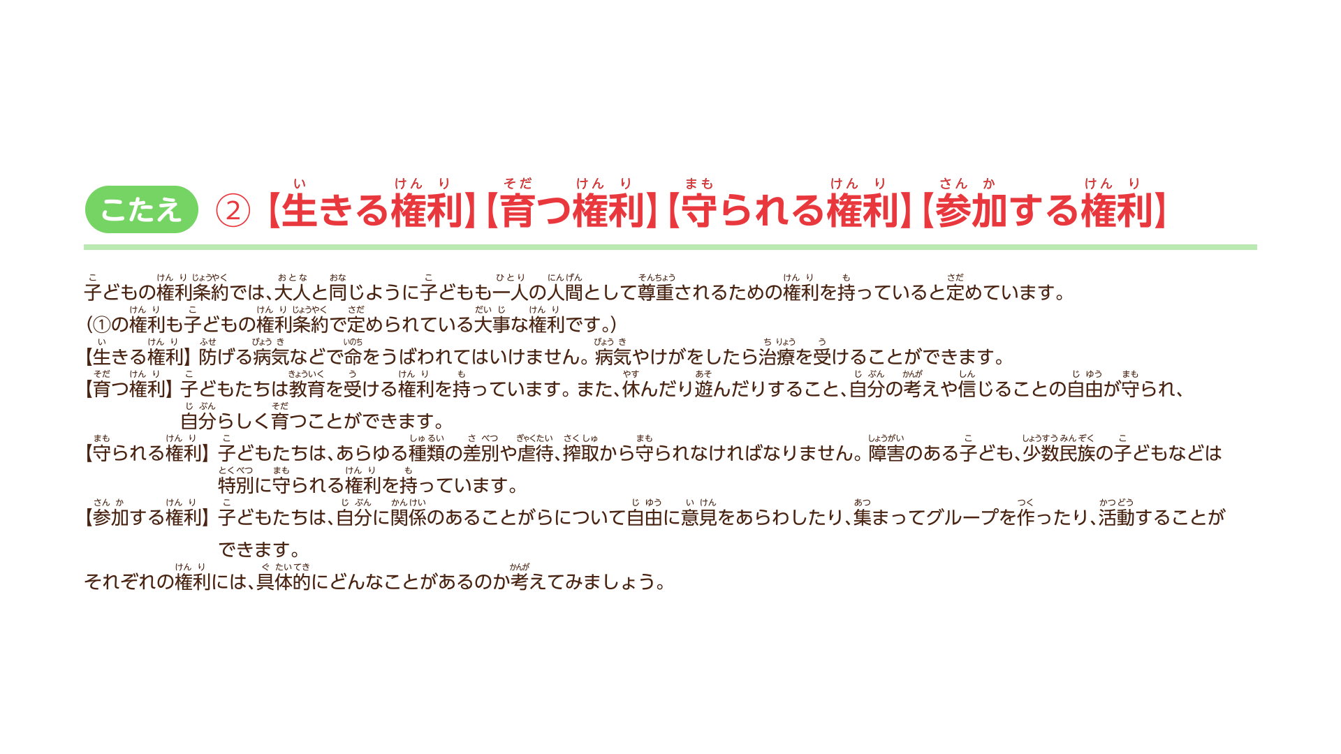 • 2.「生きる権利」「育つ権利」「守られる権利」「参加する権利」